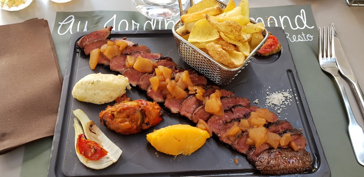 Nous y sommes allés hier soir, réservation pour 4 personnes, très bon accueil, cadre magnifique ! Personnel au top, très sympa et bienveillant à notre confort ! Bon choix de mets, très bien cuisinés ( Merci au chef) assiettes très bien dressées. Bon rapport qualité prix ! Merci a toute l'équipe "Au Jardin Gourmand " pour ce bon moment ! Nous y retournerons ! Je recommande vivement
